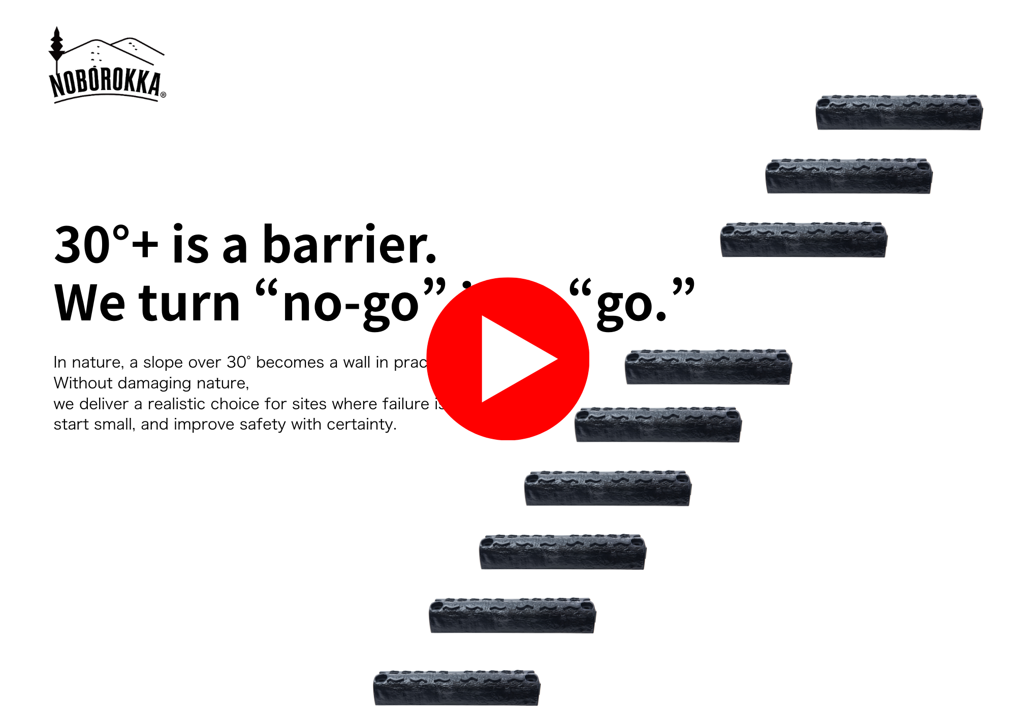 Designed for confident footing on steep descents, NOBOROKKA provides reliable grip on natural slopes.Installed by driving stakes, it can connect side-by-side for wider steps, or link lengthwise to stay in place in erosion-prone terrain.